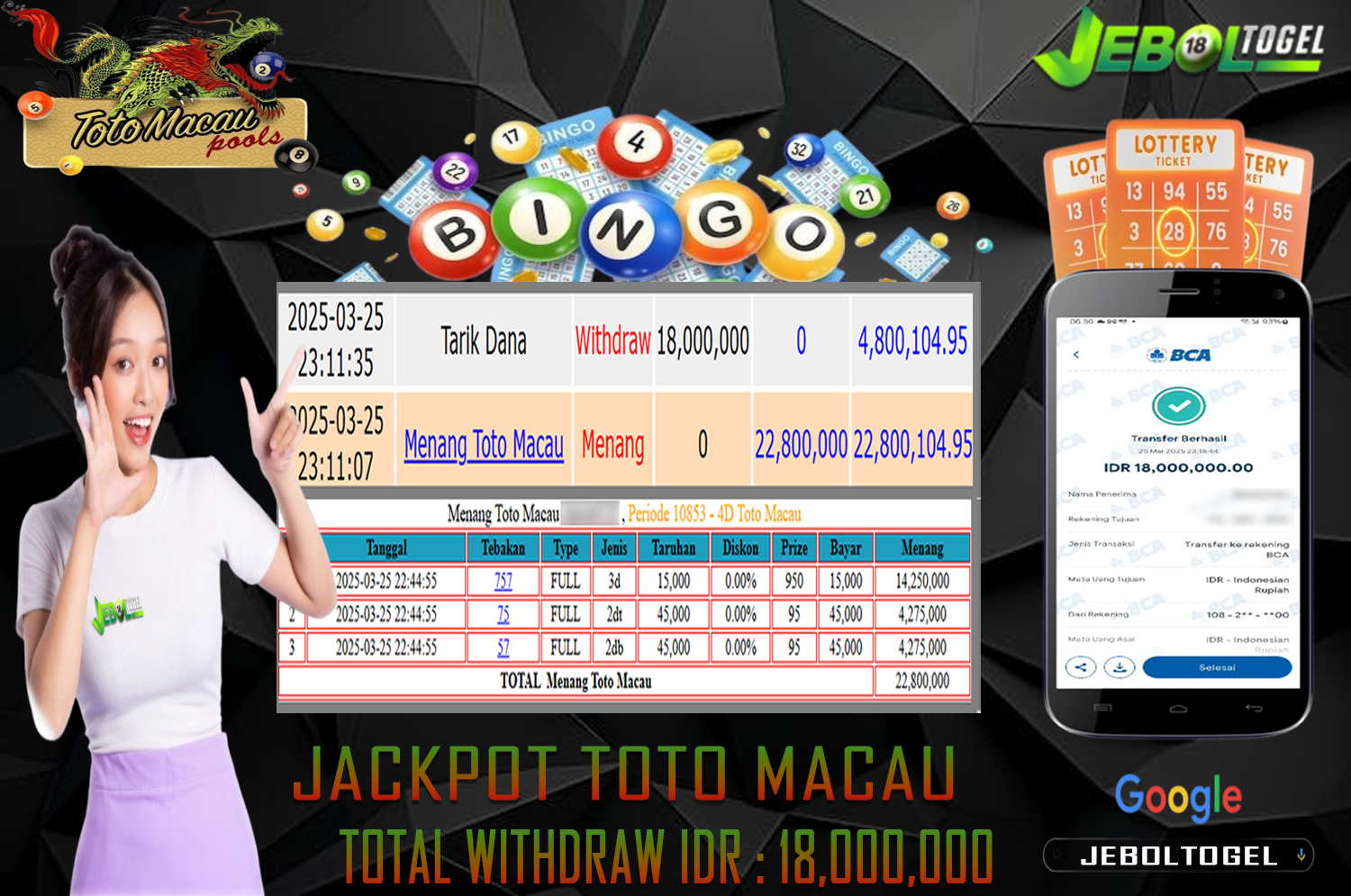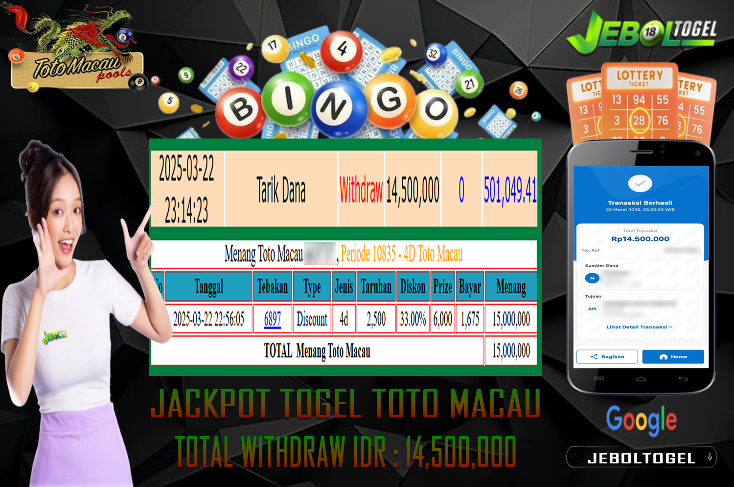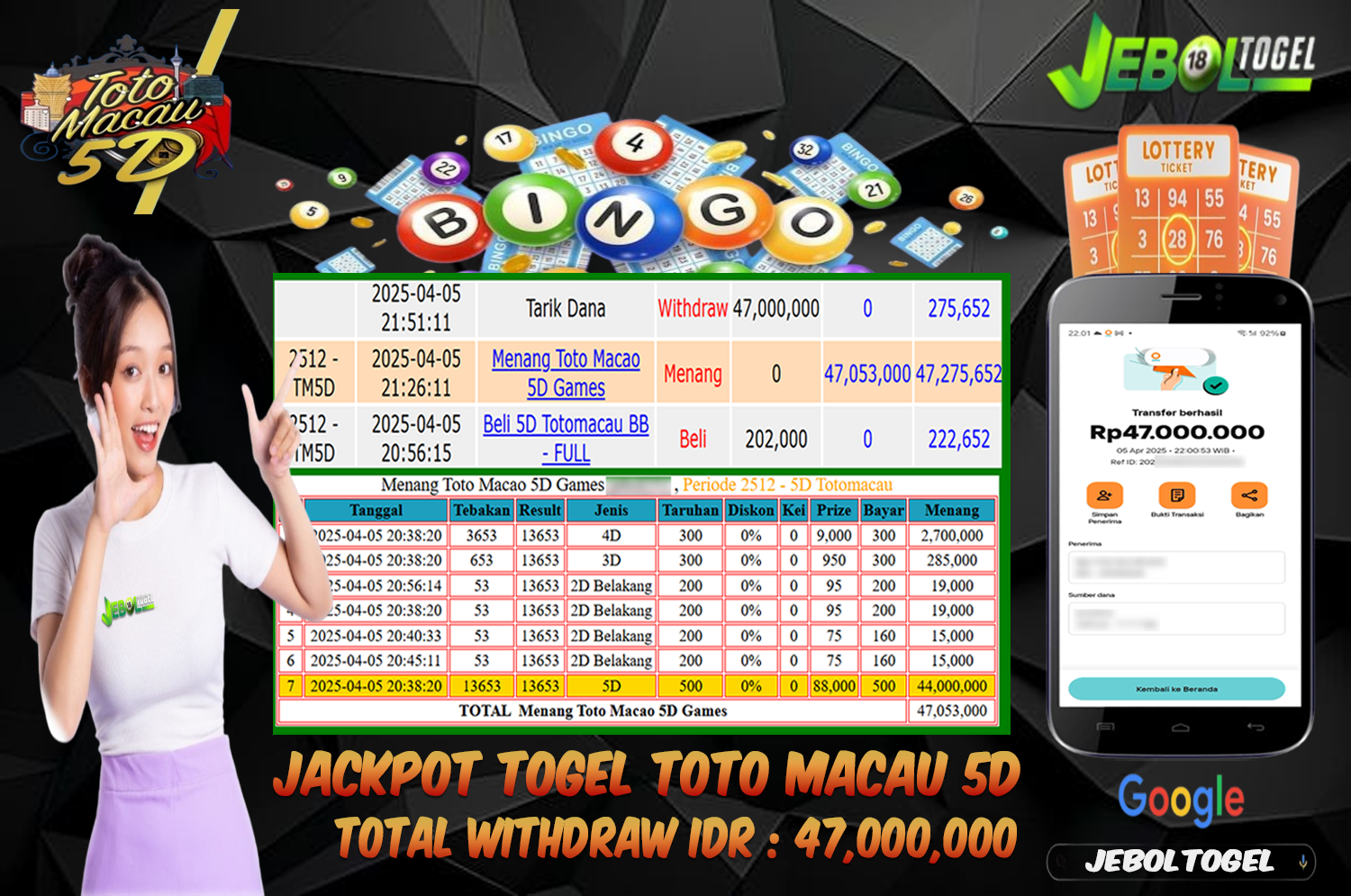 Kemenangan TOGEL Toto Macau 5D ( TOGEL ) Segera bergabung dengan kami JEBOLTOGEL, SITUS TERBESAR dan TERPERCAYA yang pasti BAYAR JP ANDA
