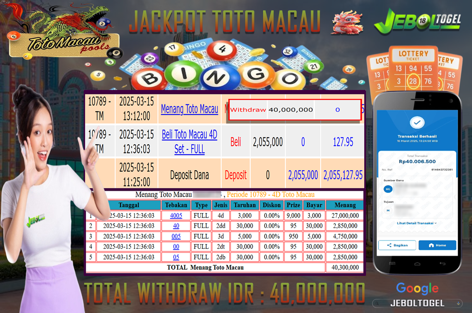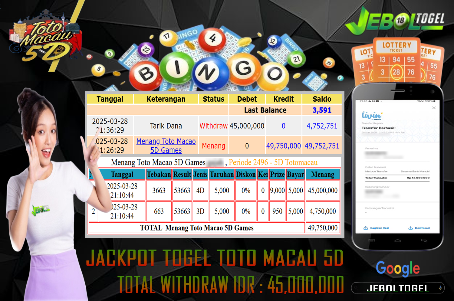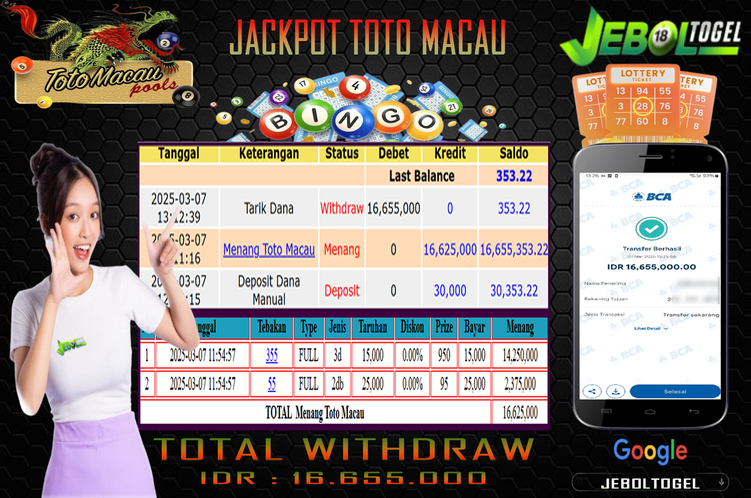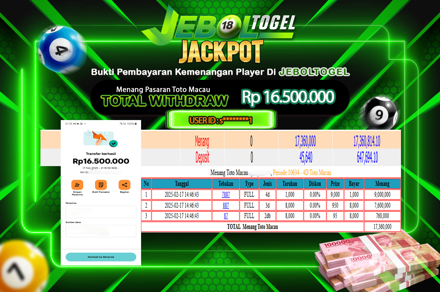 Kemenangan TOGEL Toto Macau 5D ( TOGEL ) Segera bergabung dengan kami JEBOLTOGEL, SITUS TERBESAR dan TERPERCAYA yang pasti BAYAR JP ANDA