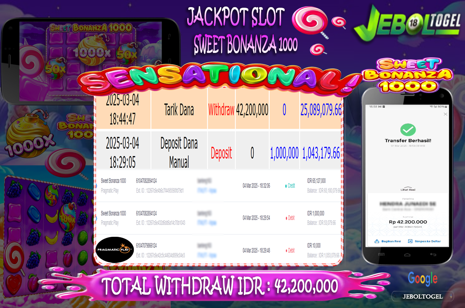 Kemenangan SLOTGAME Sweet Bonanza 1000 ( Pragmatic Play ) Segera bergabung dengan kami JEBOLTOGEL, SITUS TERBESAR dan TERPERCAYA yang pasti BAYAR JP ANDA