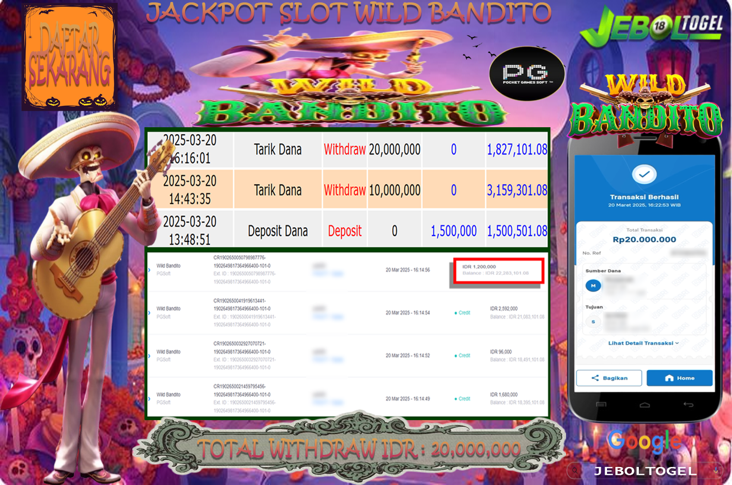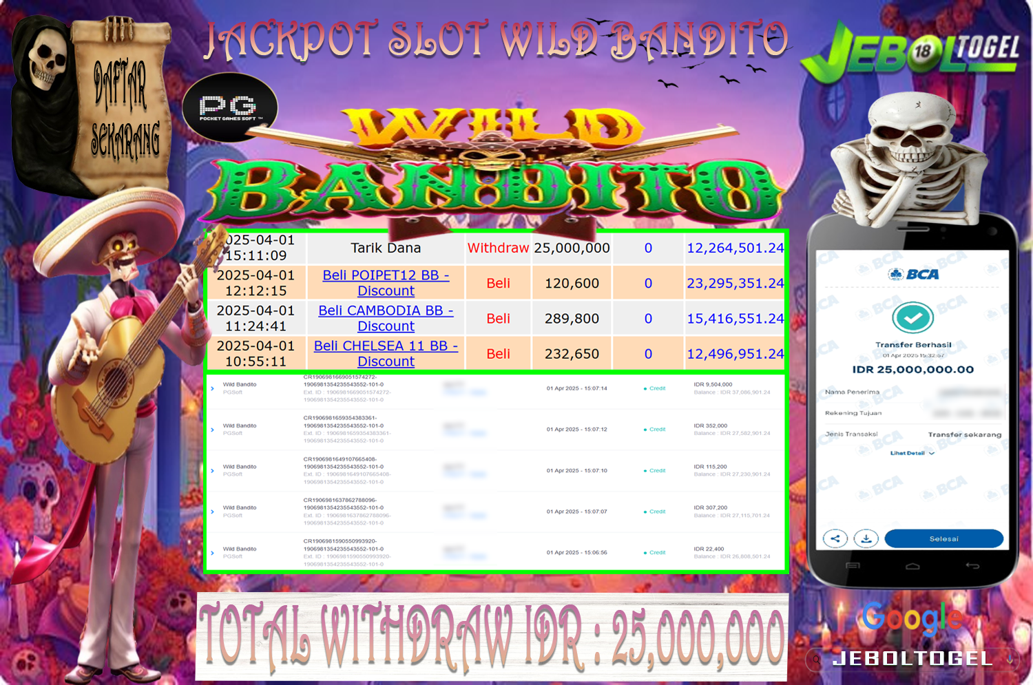 Kemenangan SLOTGAME Wild Bandito ( PGSoft ) Segera bergabung dengan kami JEBOLTOGEL, SITUS TERBESAR dan TERPERCAYA yang pasti BAYAR JP ANDA