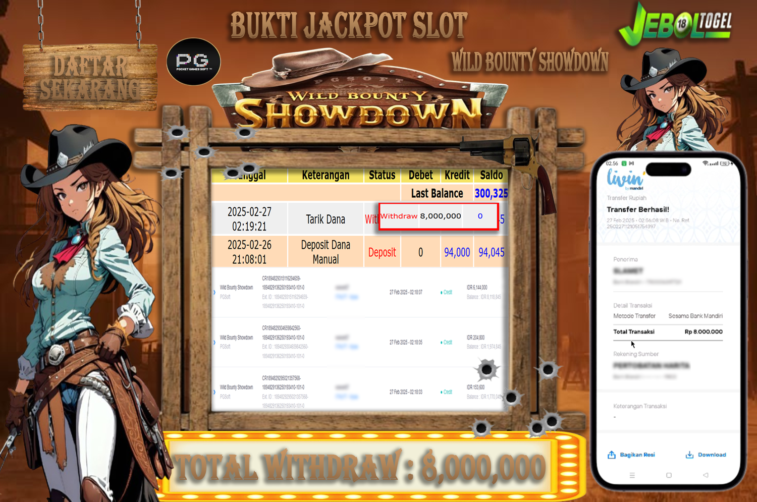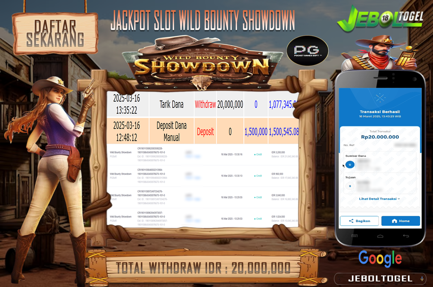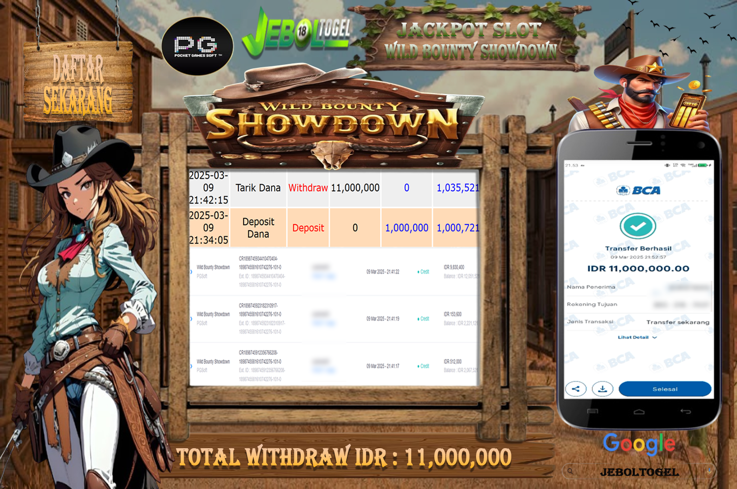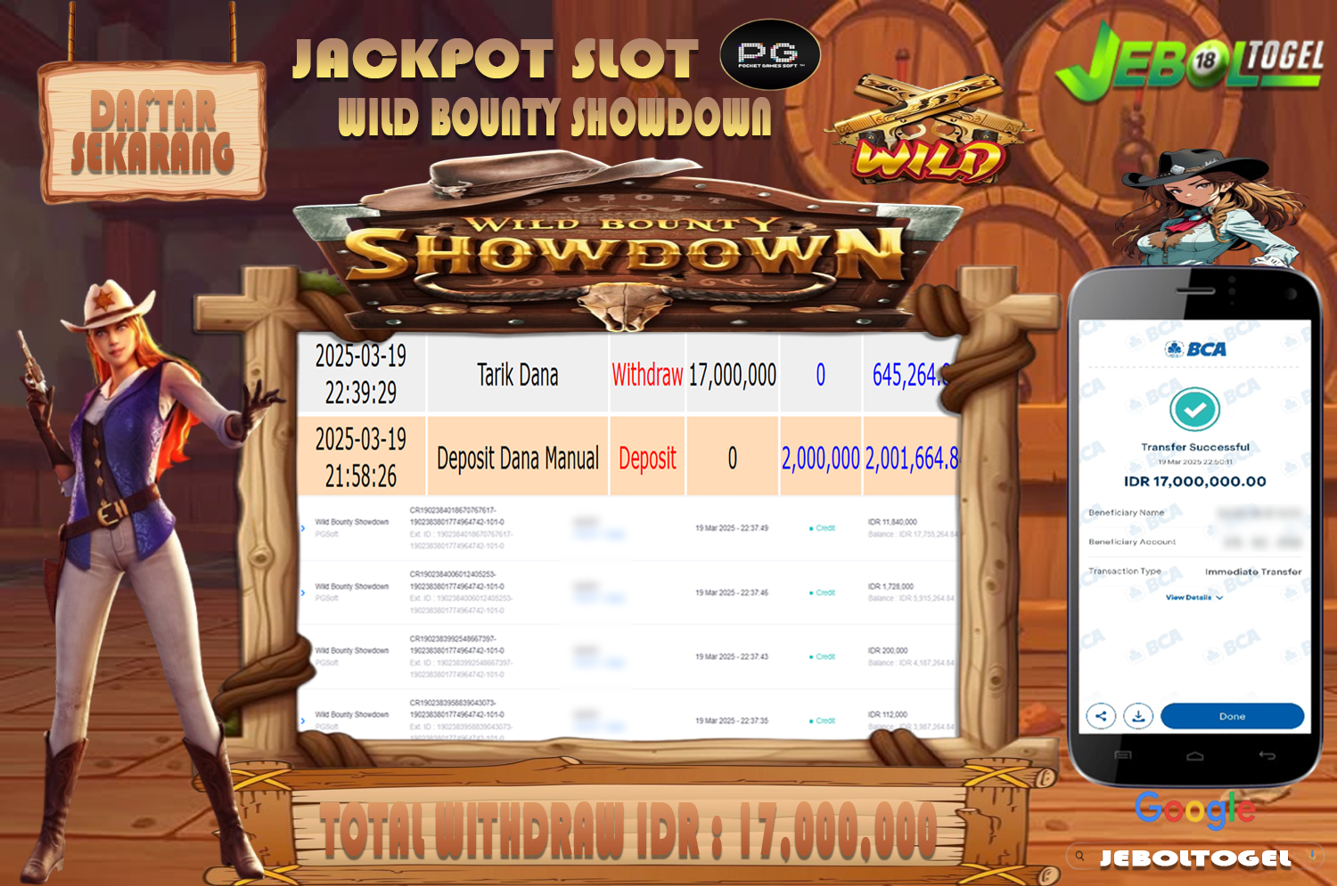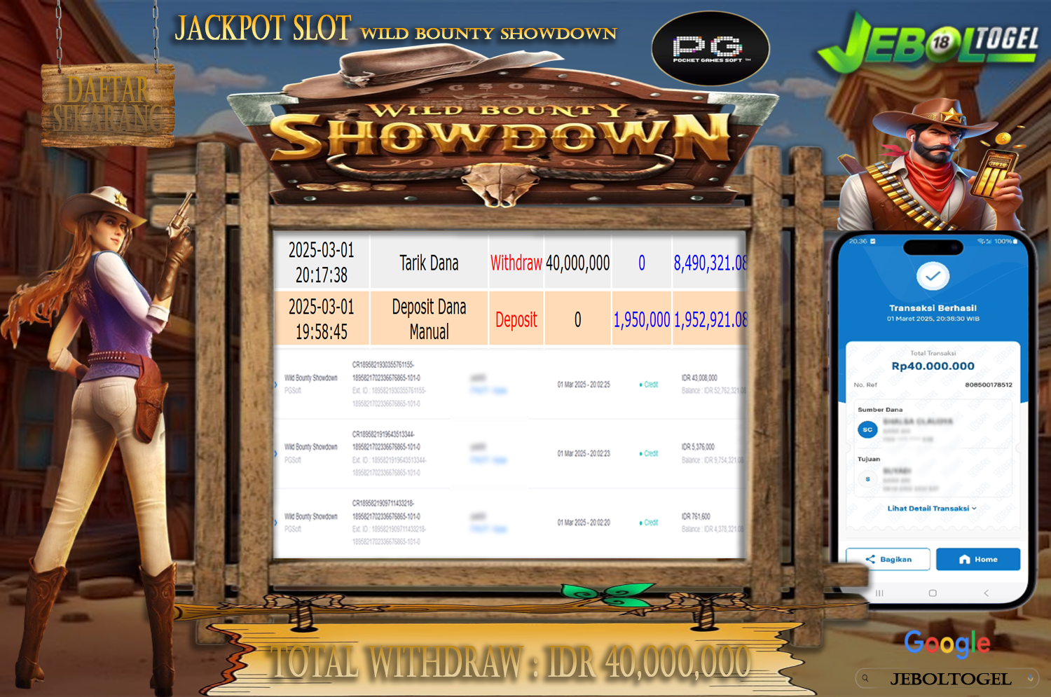 Kemenangan SLOTGAME Wild Bounty Showdown ( PGSoft ) Segera bergabung dengan kami JEBOLTOGEL, SITUS TERBESAR dan TERPERCAYA yang pasti BAYAR JP ANDA