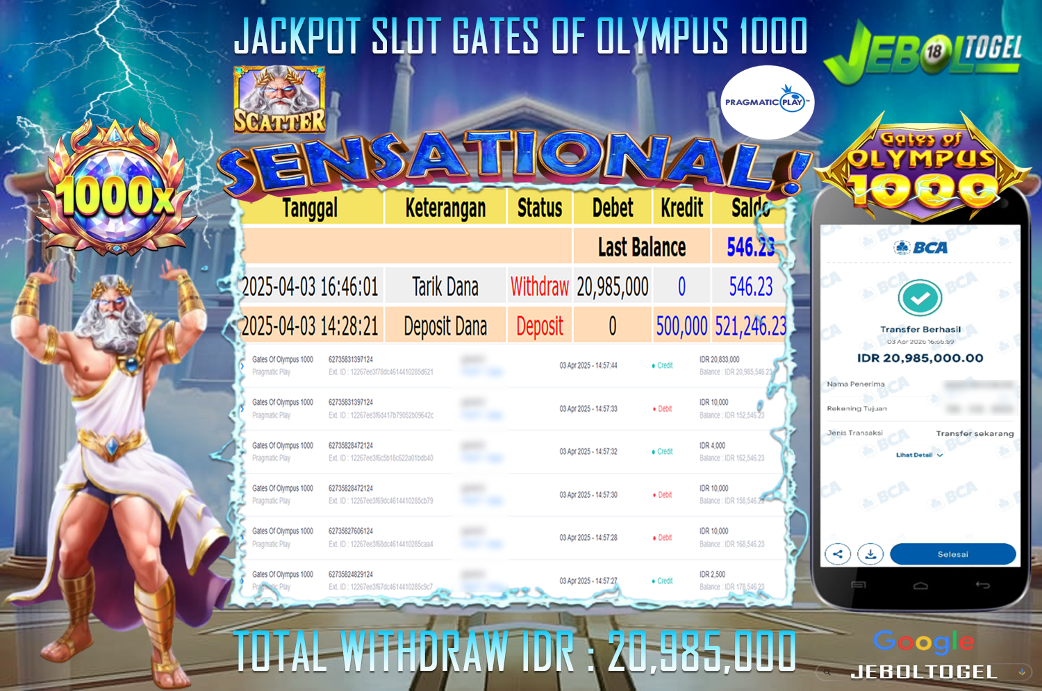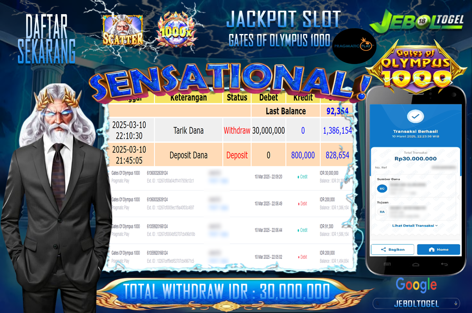 Kemenangan SLOTGAME Gates Of Olympus 1000 ( Pragmatic Play) Segera bergabung dengan kami JEBOLTOGEL, SITUS TERBESAR dan TERPERCAYA yang pasti BAYAR JP ANDA