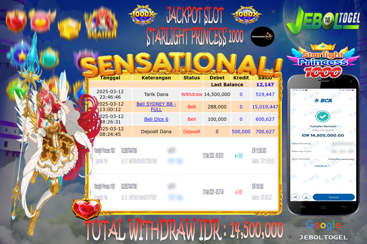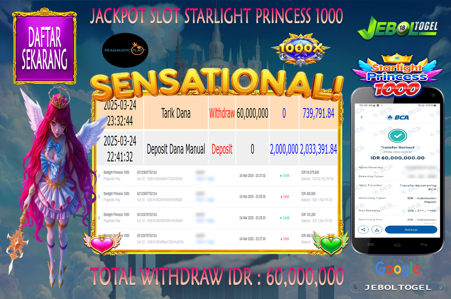 Kemenangan SLOTGAME Starlight Princess ( Pragmatic Play) Segera bergabung dengan kami JEBOLTOGEL, SITUS TERBESAR dan TERPERCAYA yang pasti BAYAR JP ANDA