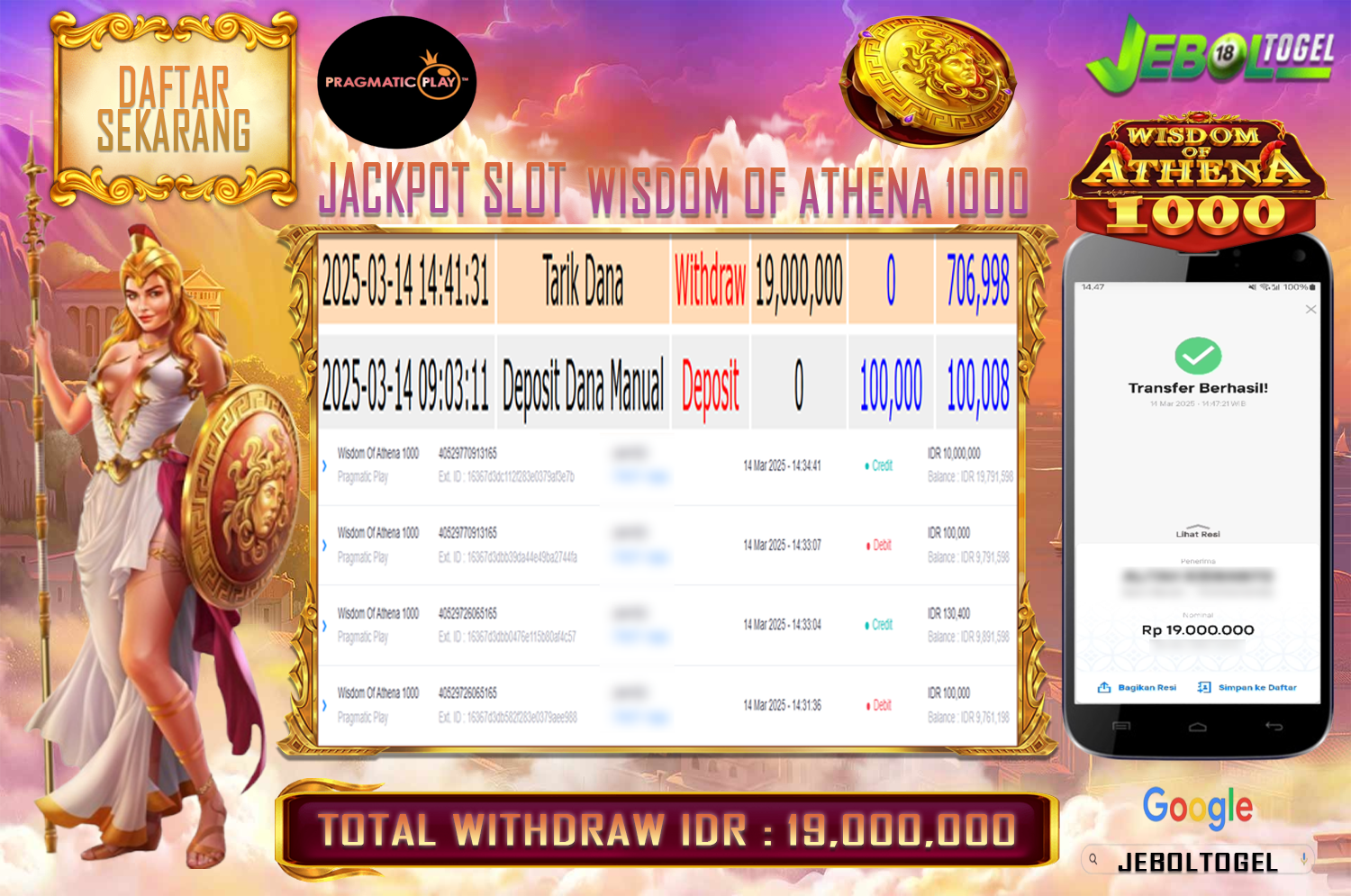 Kemenangan SLOTGAME Wisdom Of Athena 1000 ( Pragmatic Play ) Segera bergabung dengan kami JEBOLTOGEL, SITUS TERBESAR dan TERPERCAYA yang pasti BAYAR JP ANDA