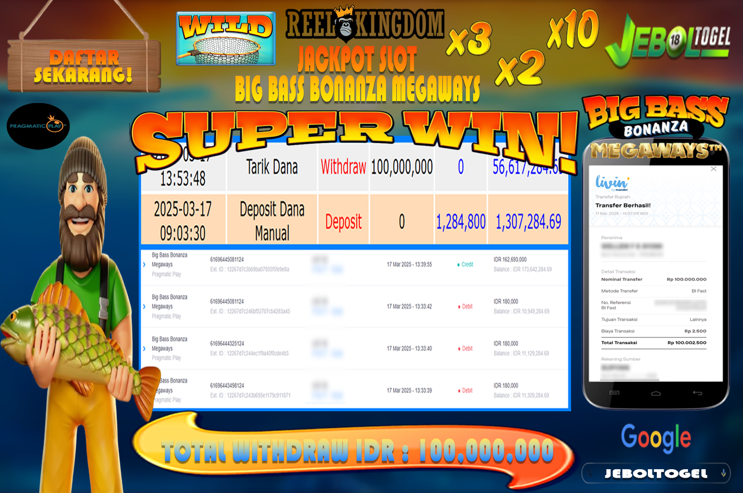 Kemenangan SLOTGAME Big Bass Bonanza Megaways ( Pragmatic Play ) Segera bergabung dengan kami JEBOLTOGEL, SITUS TERBESAR dan TERPERCAYA yang pasti BAYAR JP ANDA