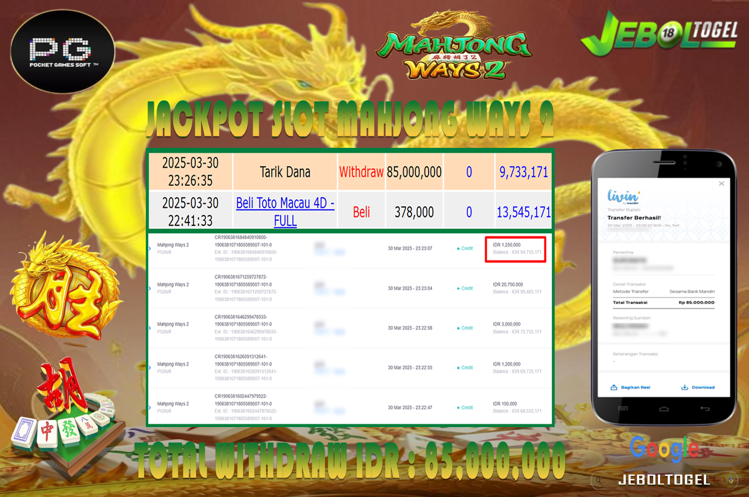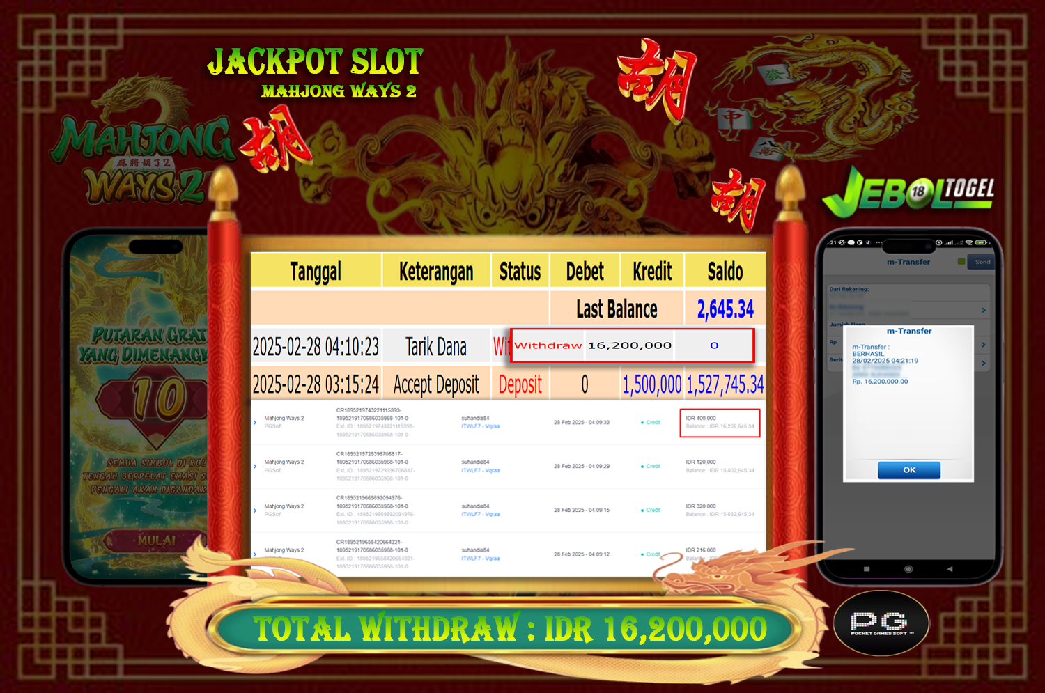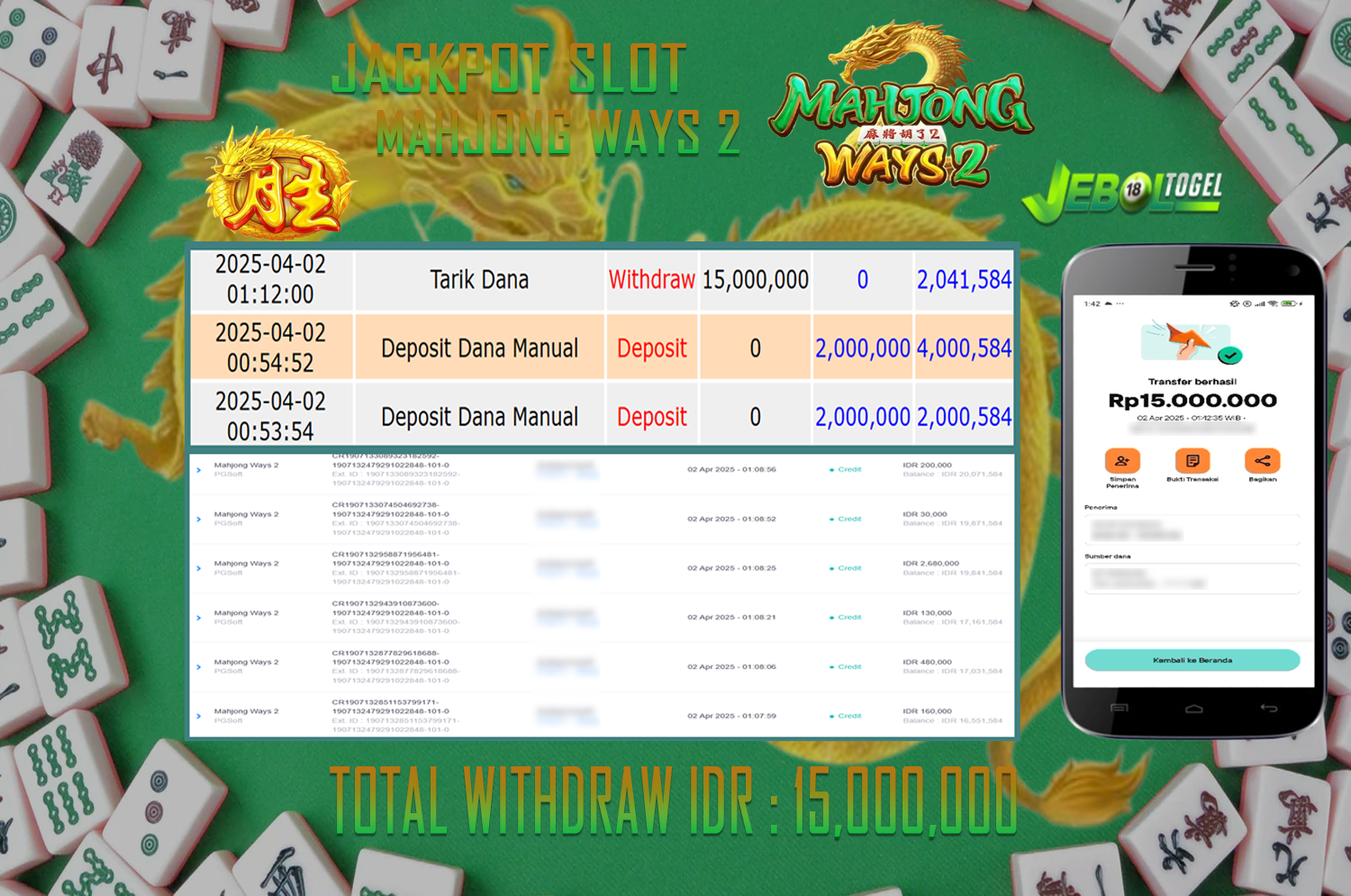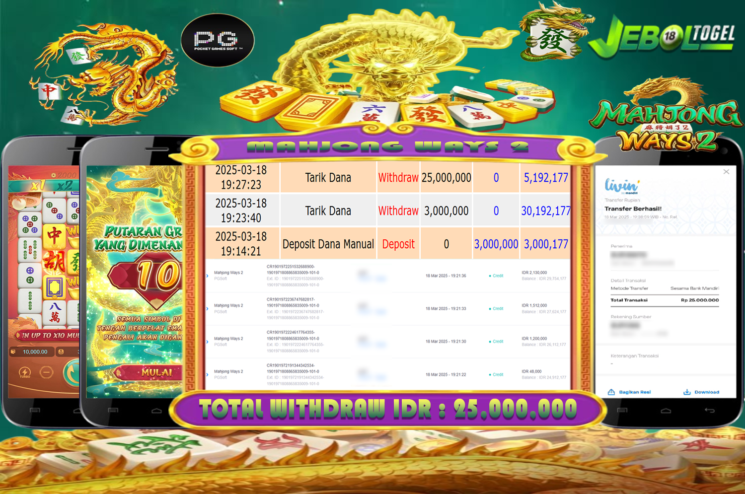Kemenangan SLOTGAME Mahjong Ways 2 ( PGSoft ) Segera bergabung dengan kami JEBOLTOGEL, SITUS TERBESAR dan TERPERCAYA yang pasti BAYAR JP ANDA