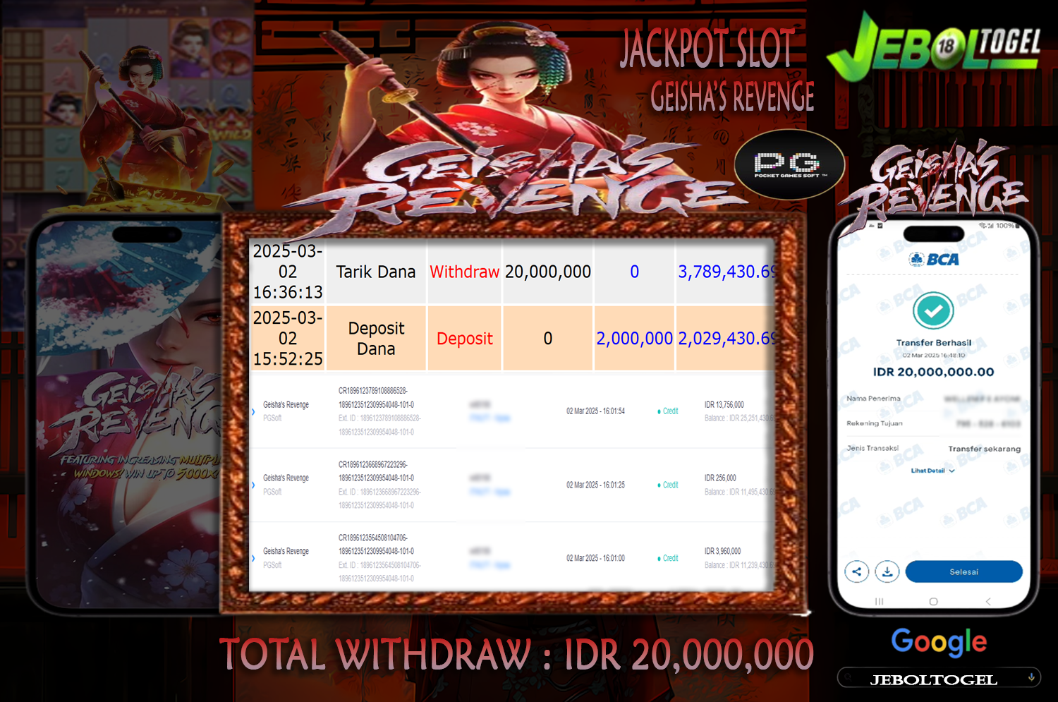 Kemenangan SLOTGAME Geisha's Revenge ( PGSoft ) Segera bergabung dengan kami JEBOLTOGEL, SITUS TERBESAR dan TERPERCAYA yang pasti BAYAR JP ANDA