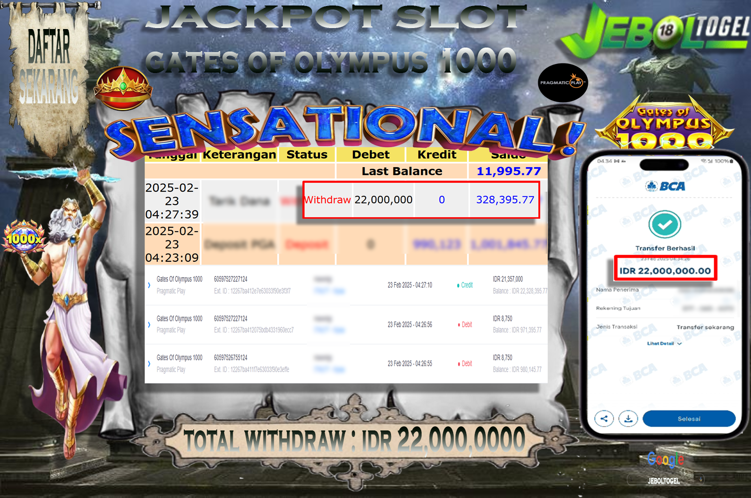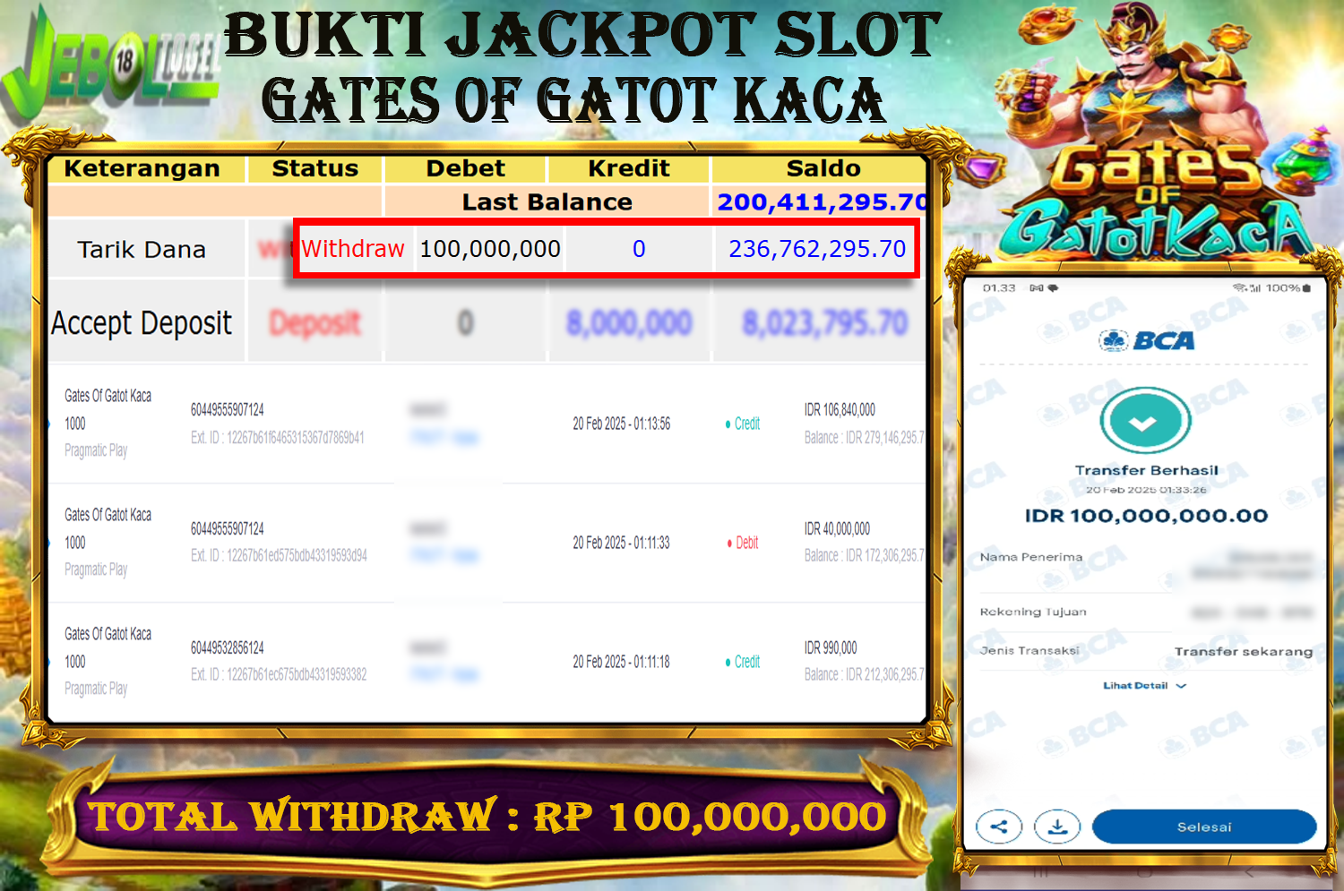Kemenangan SLOTGAME Gates Of Gatot Kaca 1000 ( Pragmatic Play) Segera bergabung dengan kami JEBOLTOGEL, SITUS TERBESAR dan TERPERCAYA yang pasti BAYAR JP ANDA