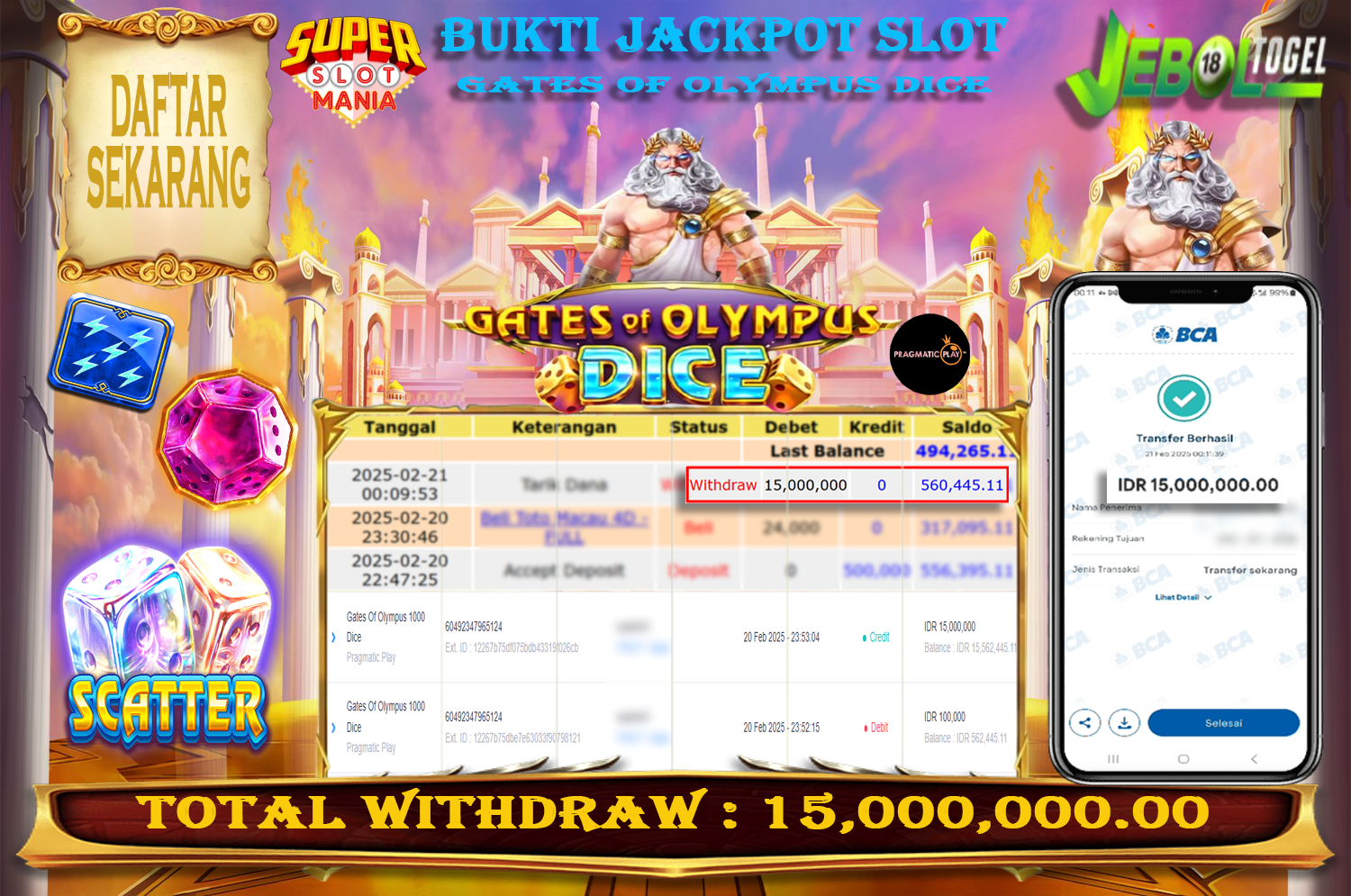 Kemenangan SLOTGAME Gates Of Olympys 1000 Dice ( Pragmatic Play) Segera bergabung dengan kami JEBOLTOGEL, SITUS TERBESAR dan TERPERCAYA yang pasti BAYAR JP ANDA