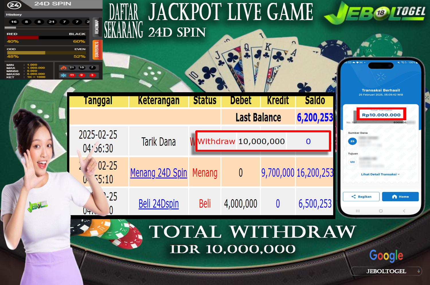 Kemenangan LIVE GAME 24D SPIN ( LIVE GAME ) Segera bergabung dengan kami JEBOLTOGEL, SITUS TERBESAR dan TERPERCAYA yang pasti BAYAR JP ANDA
