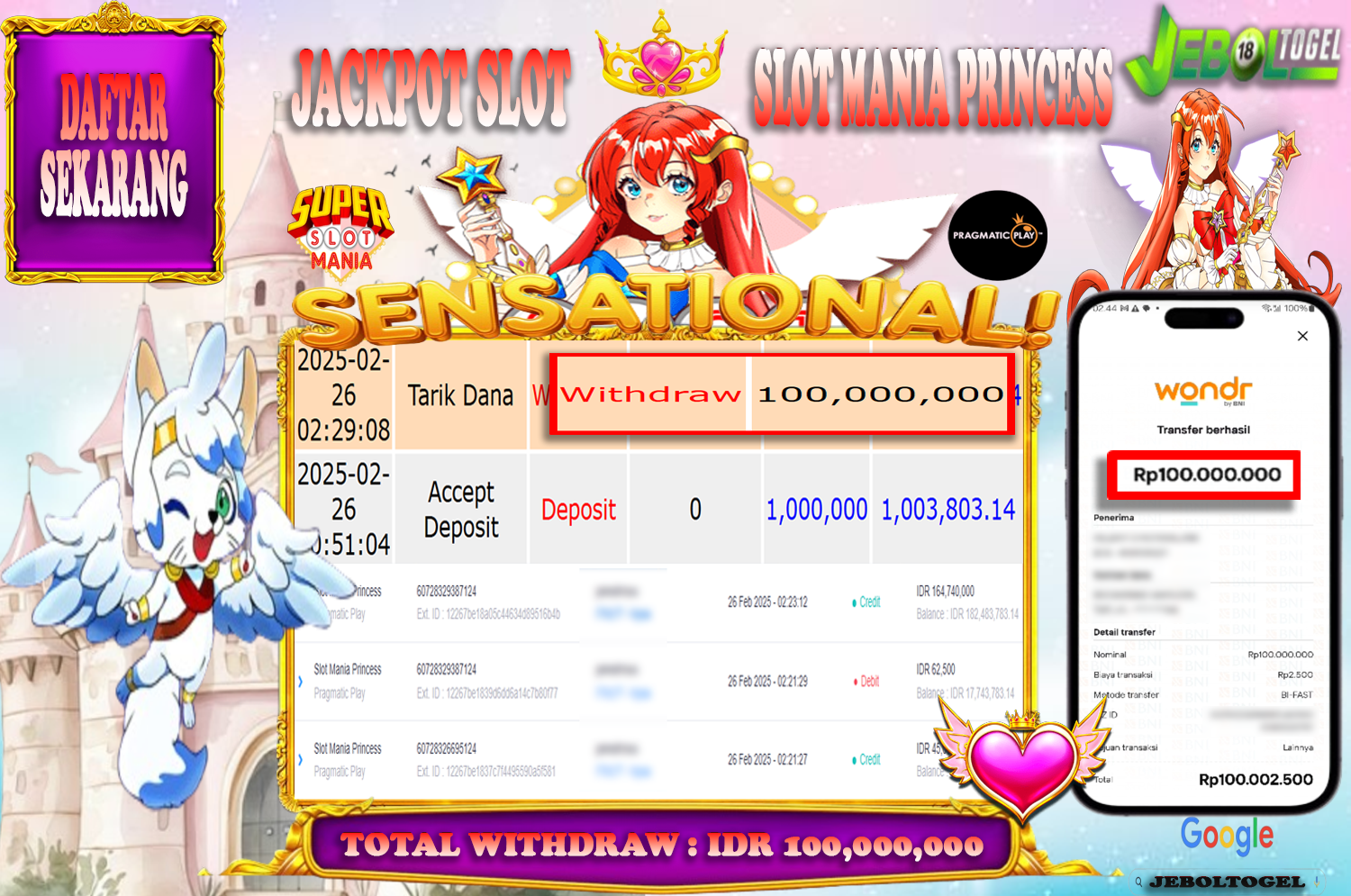 Kemenangan SLOTGAME Slot Mania Princess ( Pragmatic Play ) Segera bergabung dengan kami JEBOLTOGEL, SITUS TERBESAR dan TERPERCAYA yang pasti BAYAR JP ANDA