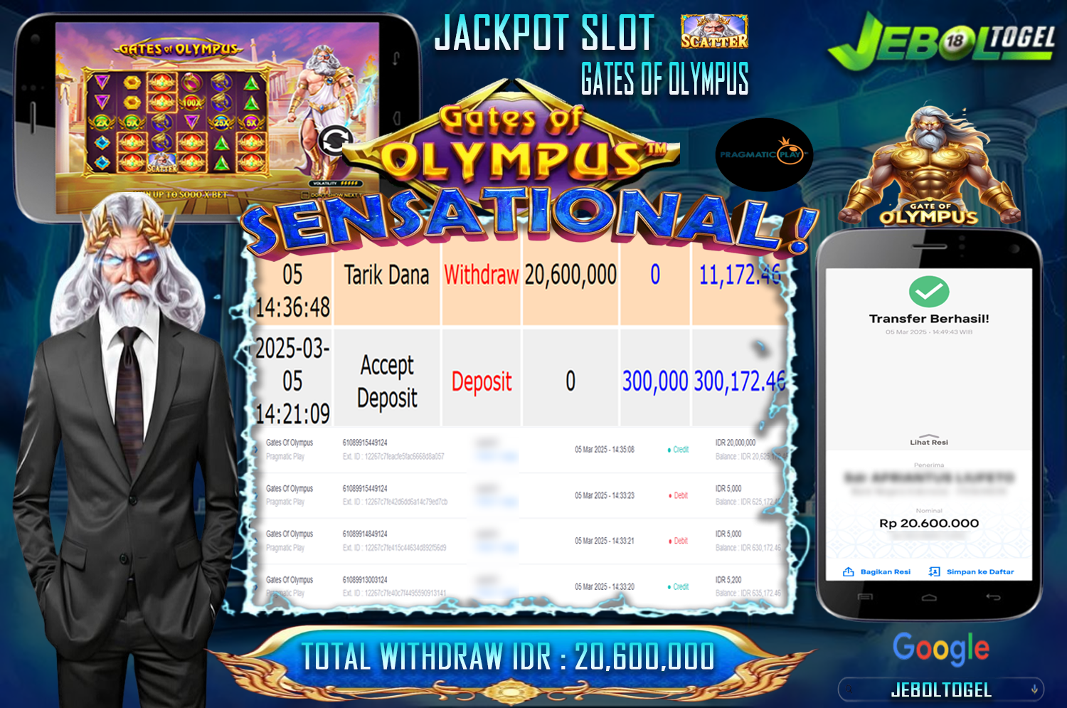 Kemenangan SLOTGAME Gates Of Olympus ( Pragmatic Play ) Segera bergabung dengan kami JEBOLTOGEL, SITUS TERBESAR dan TERPERCAYA yang pasti BAYAR JP ANDA