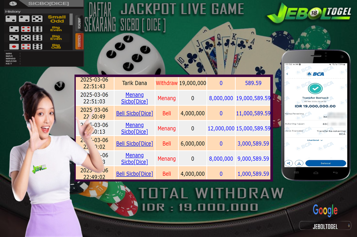Kemenangan LIVE GAME SICBO [ DICE ] ( LIVE GAME ) Segera bergabung dengan kami JEBOLTOGEL, SITUS TERBESAR dan TERPERCAYA yang pasti BAYAR JP ANDA