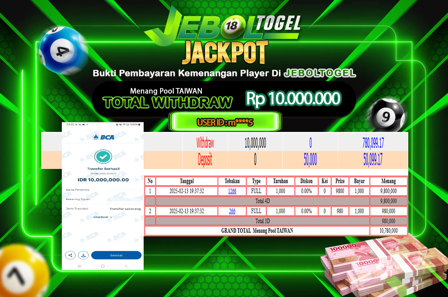 Kemenangan TOGEL Pasaran ( TAIWAN ) Segera bergabung dengan kami JEBOLTOGEL, SITUS TERBESAR dan TERPERCAYA yang pasti BAYAR JP ANDA ^^