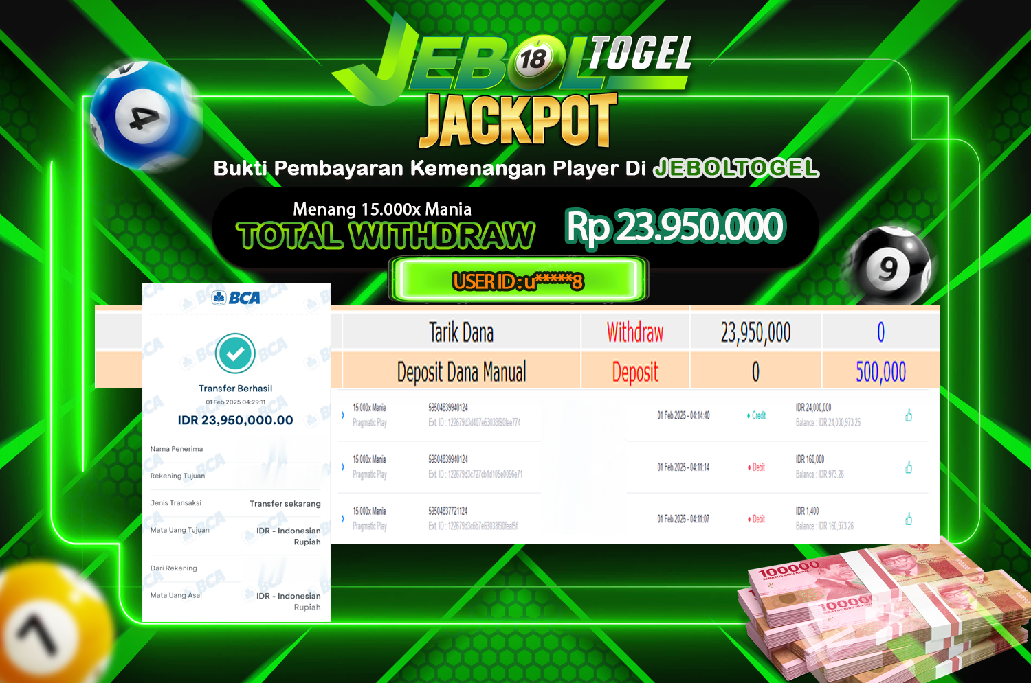 Kemenangan SLOTGAME 15.000x Mania ( PRAGMATIC ) Segera bergabung dengan kami JEBOLTOGEL, SITUS TERBESAR dan TERPERCAYA yang pasti BAYAR JP ANDA