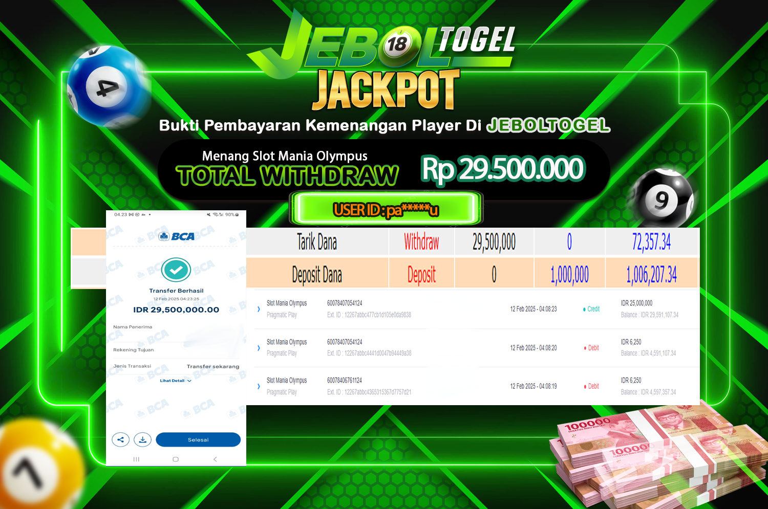 Kemenangan Slot Mania Olympus ( PRAGMATIC ) Segera bergabung dengan kami JEBOLTOGEL, SITUS TERBESAR dan TERPERCAYA yang pasti BAYAR JP ANDA