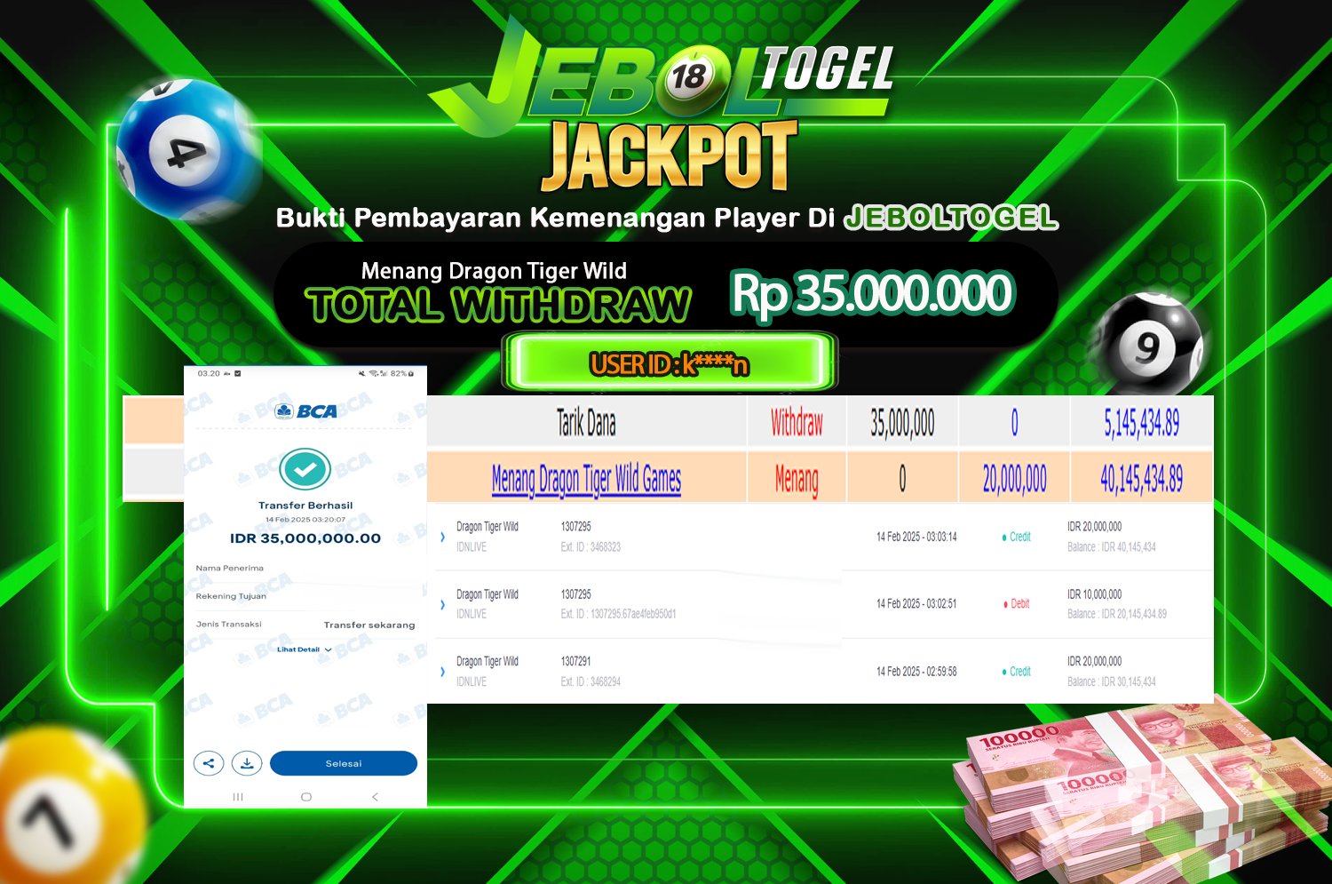 Kemenangan Dragon Tiger Wild ( IDNLIVE ) Segera bergabung dengan kami JEBOLTOGEL, SITUS TERBESAR dan TERPERCAYA yang pasti BAYAR JP ANDA