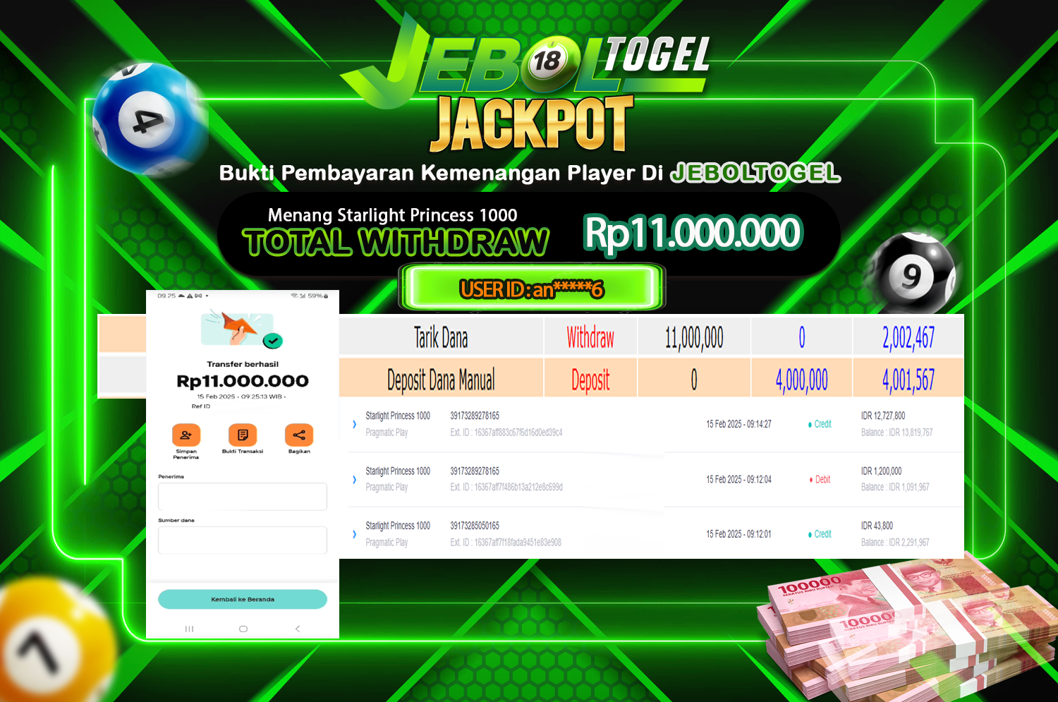 Kemenangan SLOTGAME Starlight Princess 1000 ( Pragmatic Play) Segera bergabung dengan kami JEBOLTOGEL, SITUS TERBESAR dan TERPERCAYA yang pasti BAYAR JP ANDA
