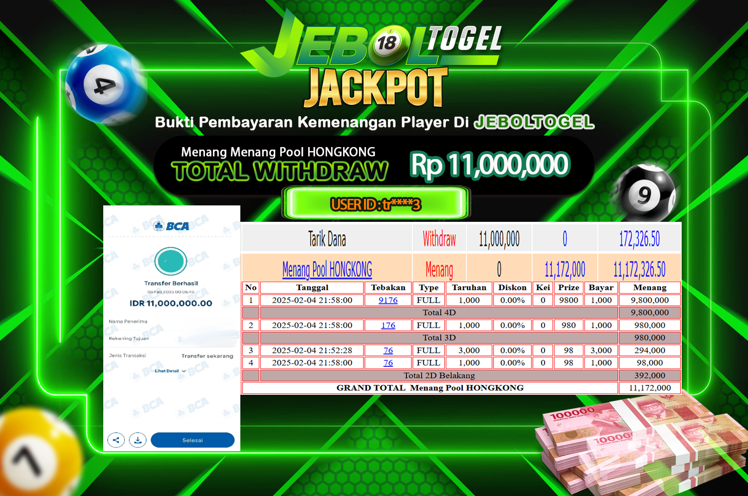 Kemenangan TOGEL Pasaran ( HONGKONG ) Segera bergabung dengan kami JEBOLTOGEL, SITUS TERBESAR dan TERPERCAYA yang pasti BAYAR JP ANDA ^^